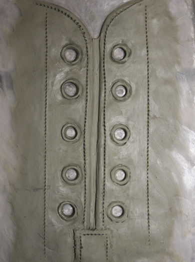 I pre-painted the prosthetic, as I figured it would be too awkward once applied. The gelatine isn’t a good colour match to my skin but should have mixed the skin illustrator flesh tone to match better. The molded lace holes had bubbles so the eyelets were slightly holey. It’s all just one big learning curve.