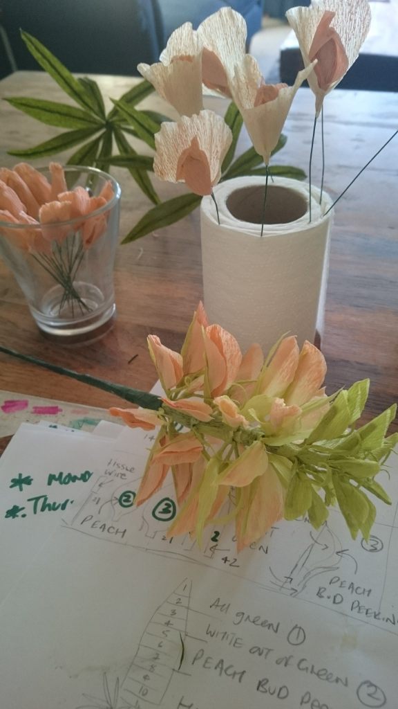 Found something new I LOVE doing crepe paper flowers. When I was little my Aunty Joan made a tutu for our holiday fancy dress competiton out of crepe paper, it was a thing of beauty and following in that trends, in honor of her talents – Crepe paper flowers. Its such a flow state, Zen creative.