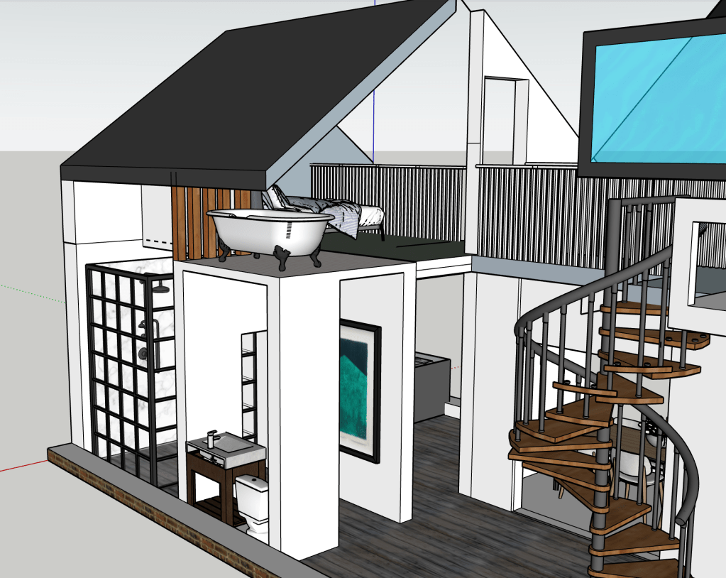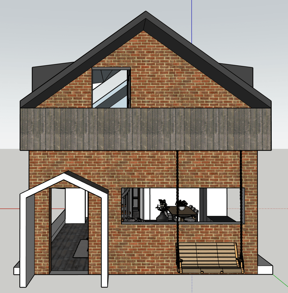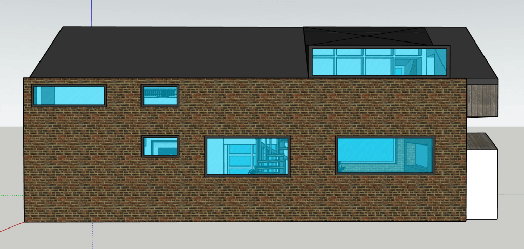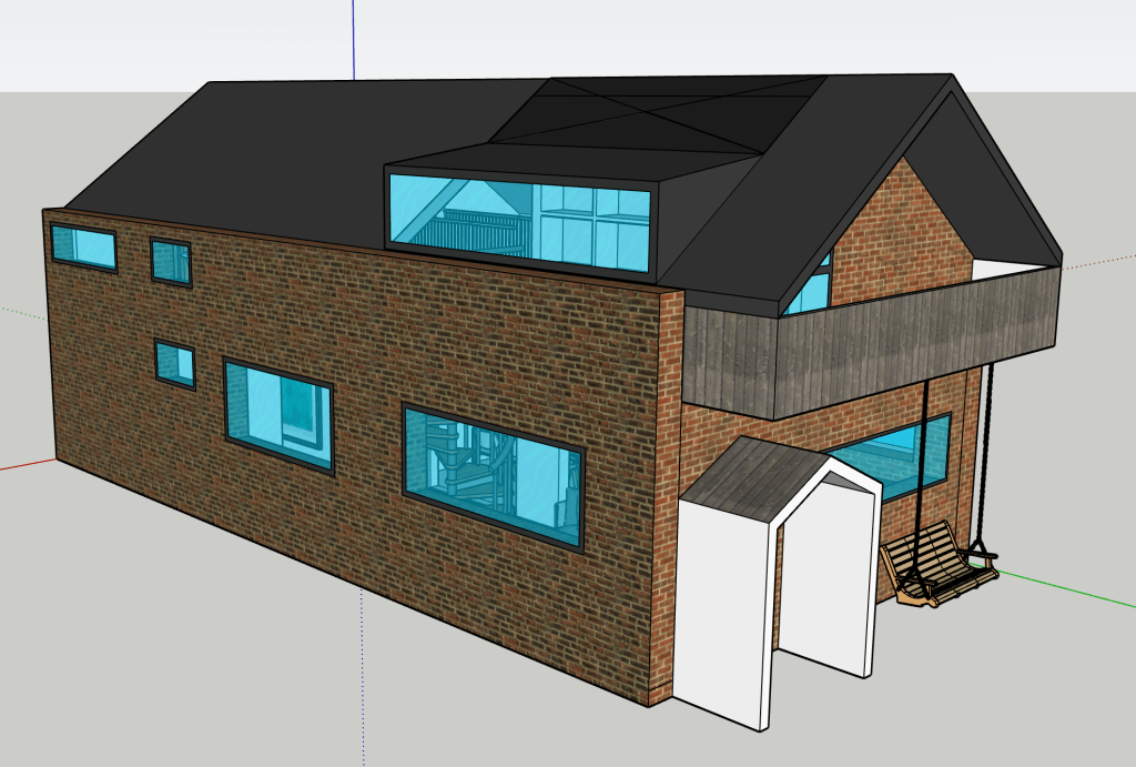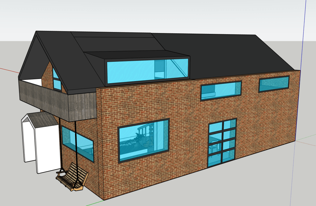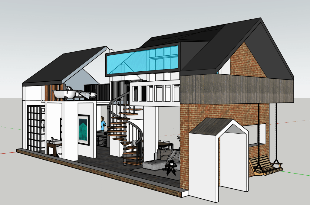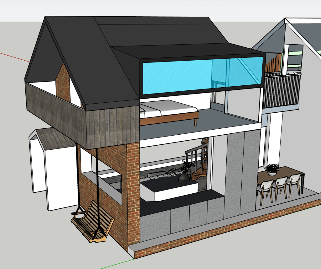 Sometimes I just like designing spaces. I have always wanted to build a house, so I’m always designing houses. This is smaller and more modest than the big house with the central atrium. It seems a smarter use of space and a more realistic and humble home I guess. I’m always striving for a double height brick wall courtyard garden. I’m good at visualising space. I can walk it in my head with ease and it’s a place I like to hangout. The concept with this house was connected space. To perhaps be able to hear but not see the inhabitants when they are using the space.
